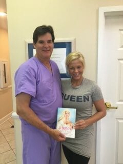Joyce Lieser, Extreme Makeover Winner celebrating with Dr. Mark Mandell-Brown.