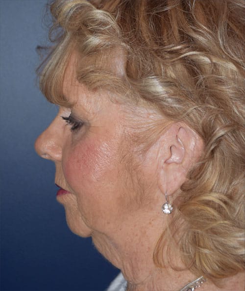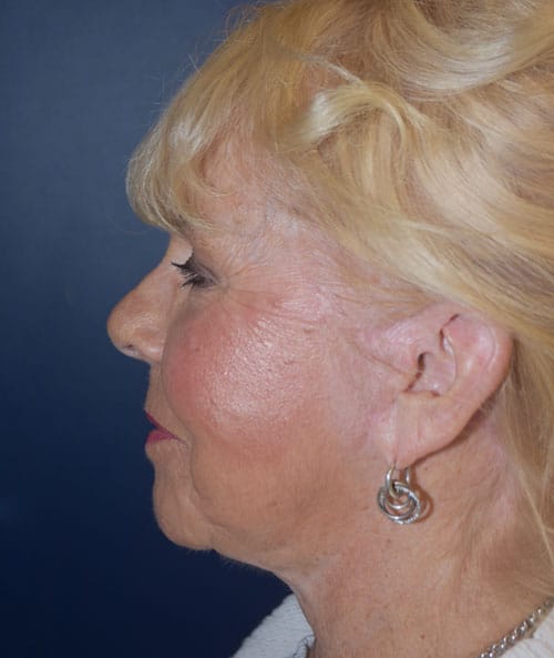 This patient had a deep-plane facelift and CO2 laser treatment around her mouth. The After images show 1 year post-surgery by Dr Mandell-Brown.