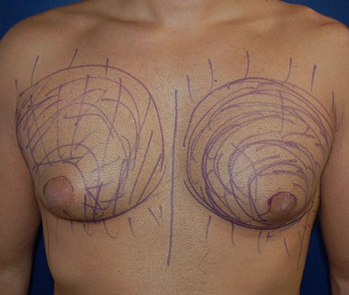 This patient had glandular breast tissue along with fatty breasts. Dr Mandell-Brown performed liposuction and gland excision on him.