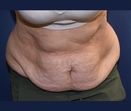 This is a Dr Mandell-Brown patient, 8 months after a full tummy tuck. Note how Dr Mandell-Brown avoided the vertical “Flor de Lis” incision by advancing the excess skin inferiorly while tightening the rectus muscles.
